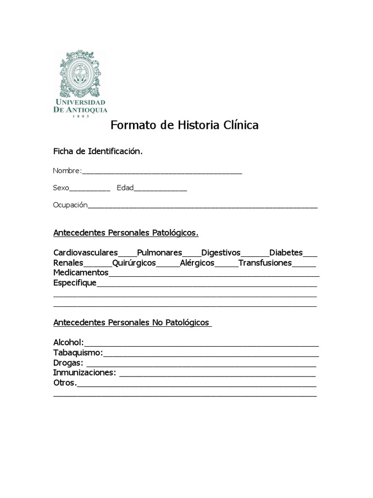 Formato De Historia Clinica Pregrado Humanidades Medicas Medicina from imgv2-1-f.scribdassets.com A esta clasificación se agregó el grupo terapĆ©utico, en la que se incluyeron los antecedentes farmacológicos y terapĆ©uticos que generan. Antecedentes personales no patológicos • en este apartado se indagan los datos del paciente relacionados con su medio(vivienda, ambiente familiar) la historia clinica y la semiologia einterrogatorio aparato respiratorio. Antecedentes patológicos, enfermedades concomitantes, enfermedades de la infancia, problemas.